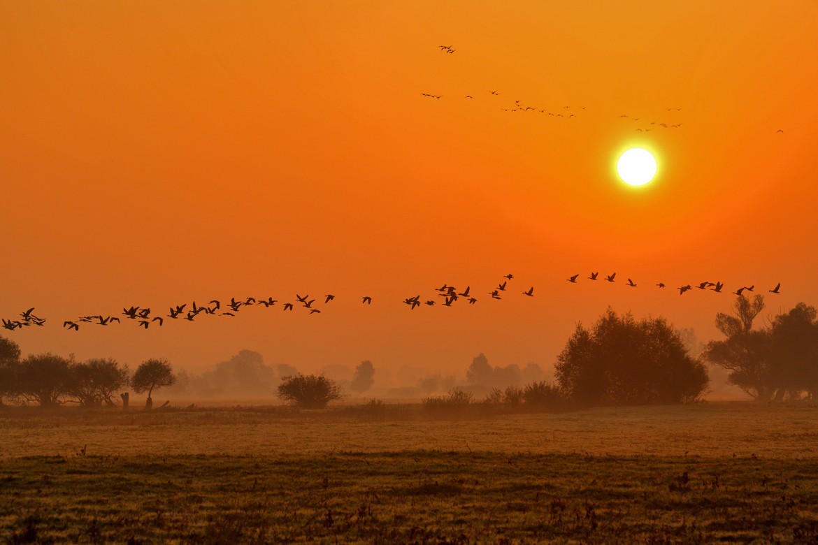 El akarsz jutni arra a helyre, amely lengyel és külföldi ornitológusok százait vonzza? Szeretnél szemtől-szembe állni a rétisassal, csörgőrécével, pajzsos cankóval vagy csigaforgatóval? Esetleg egy másik madárral szeretnél találkozni a 250 fajta közül? Ez a mágikus hely az Ujście Warty Nemzeti Park 8 ezer hektáros ártere és mezője. A Słońsko Baráti Társaságnak köszönhetően nyitották ott meg a Madár Köztársaságot – ennek az egyedi kezdeményezésnek a fő célja, hogy egy egyesületbe tömörítse a madárbarátokat. Ősszel a környéken hatalmas libarajok jelennek meg, itt tartanak szünetet a téli költőhelyük felé vándorolva. Hallgass bele abba az elképesztő zajba, amit 150 ezer felszállni készülő madár szárnya csap!