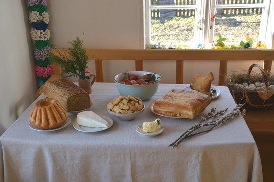 E tájegységben a húsvéti reggeli szerény volt. Túrót ettek, vajat, kenyeret és néhány süteményféleséget. A vacsora bőségesebb volt, mert füstölt hús, sonka, oldalas és sült szárnyas is került az asztalra. Húsvétvasárnap rejtették el különböző helyekre a nyuszi ajándékait. Ezeket a gyerekek kutatták fel, és ujjongva találtak rájuk. Húsvétvasárnap ebéd után mindenki az erdőbe ment borókaágért a hétfői locsolkodáshoz. Húsvéthétfőn a fiúk borókavesszővel szaladgáltak és megsuhintották az útjukba akadó embereket vagy bekopogtattak a házakba, és ugyanezt csinálták az ottlakókkal. Tojást vagy más nyalánkságot kaptak cserébe.